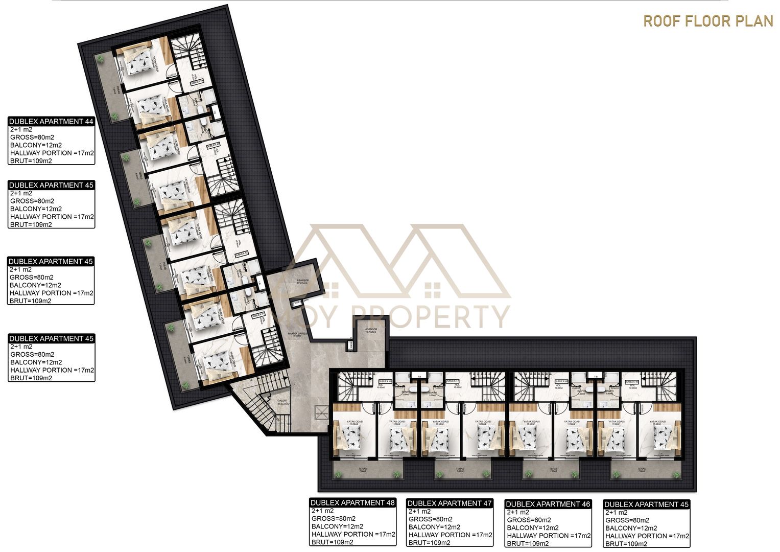2+1 м² Нетто = 80 м² Балкон = 12 м² Брутто = 109 м²